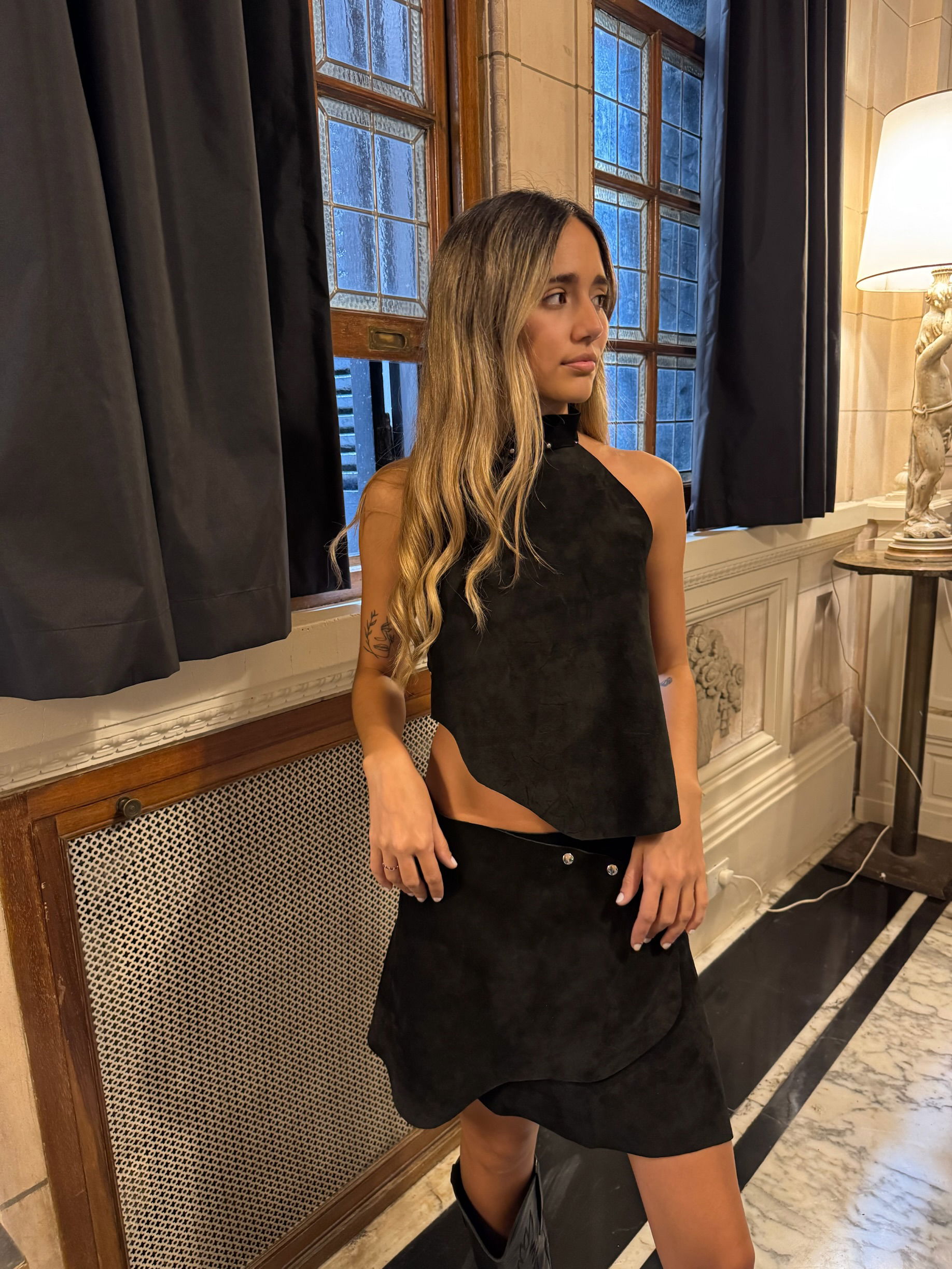 Top de cuero 100% argentino. Posee un broche en el cuello y 2 en la espalda que permiten regularlo en doble posicion.