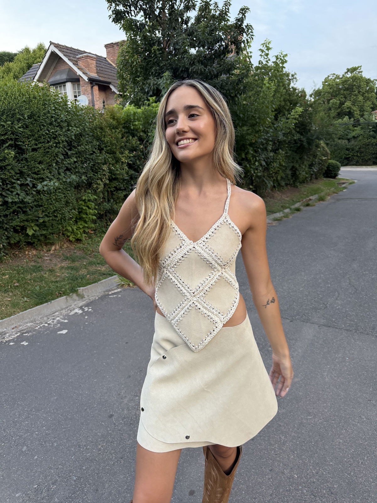 Pollera 100% cuero argentino. Posee 3 posiciones de broches que la hacen regulable y adaptable.